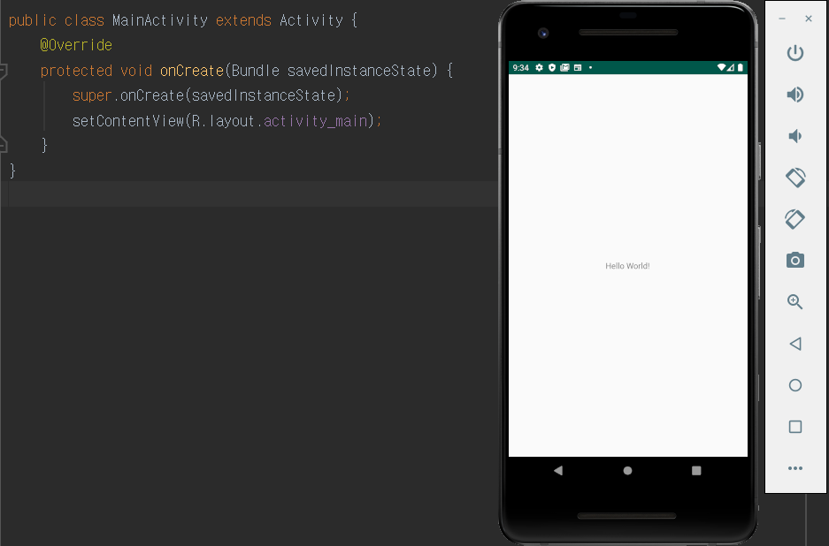 AndroidManifests에서 위의 코드처럼 <activity> 태그의 android:theme 속성을 이용해서 타이틀 바를 제거하는 방법도 있지만 오류가 나면 찾기 힘들어서 JAVA 코드를 이용해서 타이틀 바와 상태 바를 제거하는 방법을 소개하겠습니다.