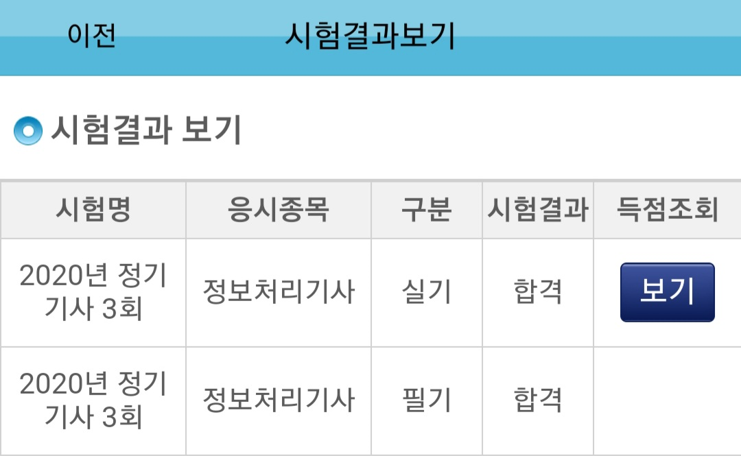 11월 12일 정기 기사 3회 정보처리기사 합격자 조회해보니 합격했어요!