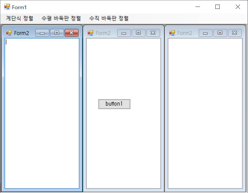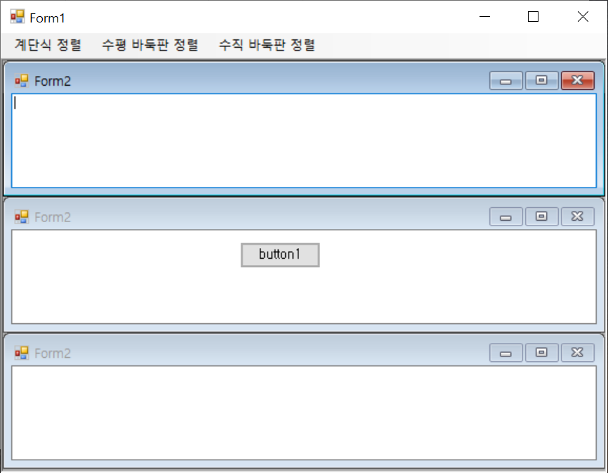 - 수평 정렬 (MdiLayout.TileHorizontal)