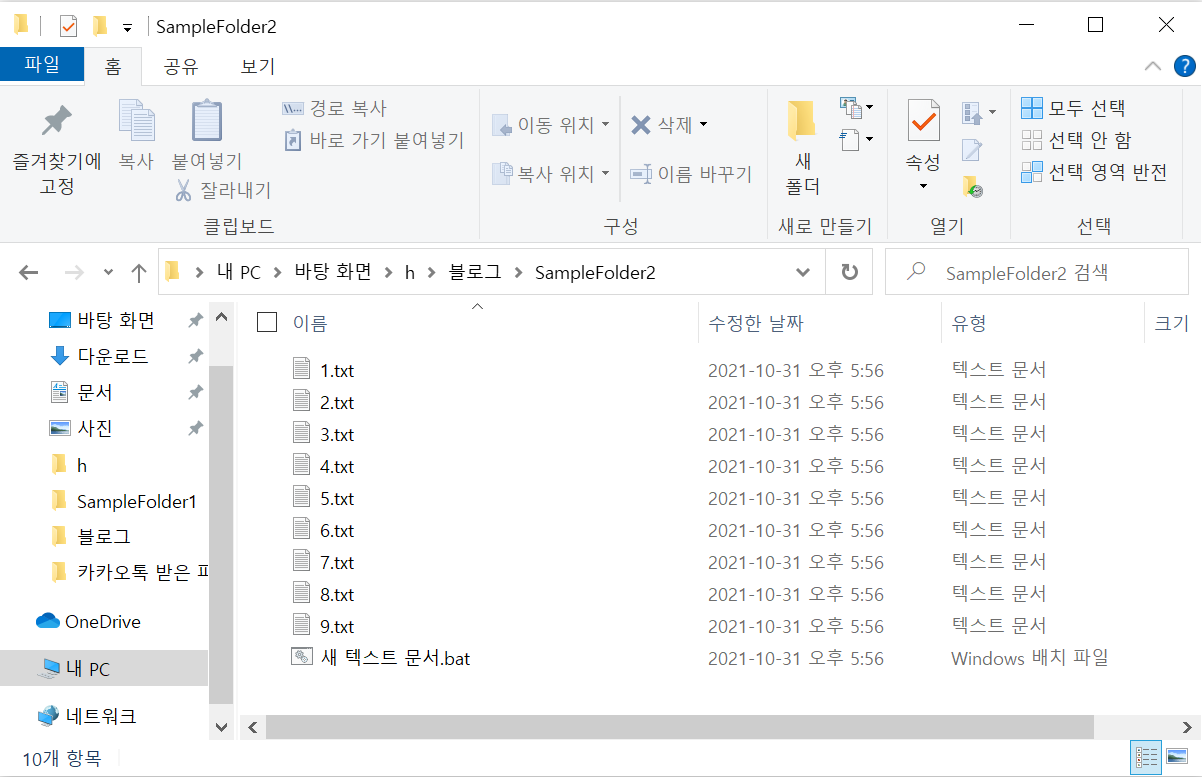 비교할 샘플 파일을 만들기 위해 해당 명령으로 배치 파일을 실행해봤다.